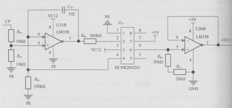 電壓測量首先需要通過測量互感器將電壓和電流轉(zhuǎn)換為可以測量的小信號。例如對220V的電壓信號的測量,采用的互感器變比為2mA/5mA,采用如圖所示的電路,可知在220V時互感器的輸出恰好為5mA。