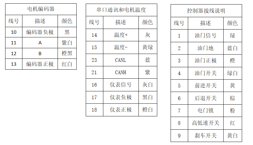 電機(jī)控制器接口定義